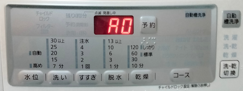 パナソニックの洗濯機NA-VH320LでHA0エラー