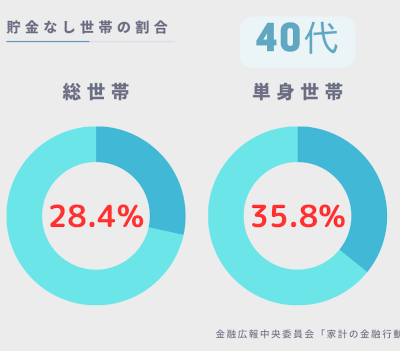 年代によって違いがありますが、2割~4割程度が貯蓄なし世帯となります。